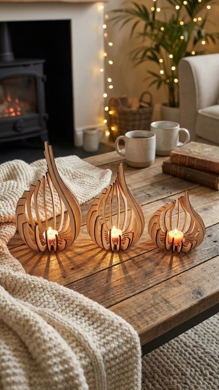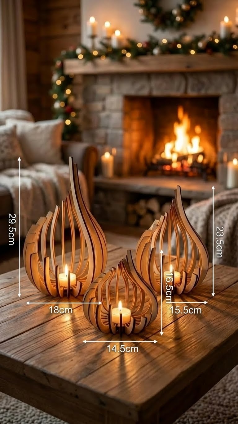 La structure ajourée de chaque pièce invite la flamme à un jeu d'ombres et de lumières, projetant des éclats naturels qui transforment votre espace en un cocon douillet.