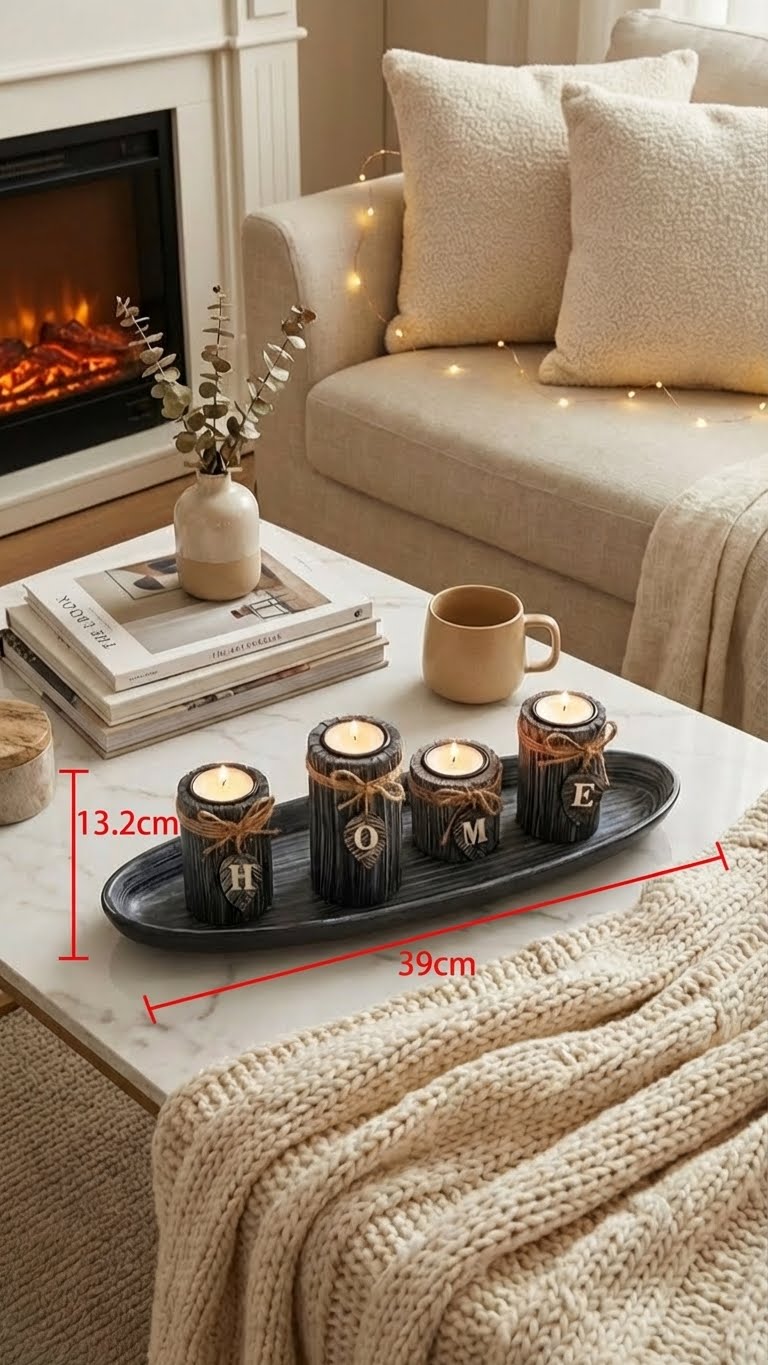 Cet ensemble a été pensé pour s'intégrer avec élégance. Le plateau mesure environ 38 cm de long et 12 cm de large, avec chaque bougeoir d'environ 5 cm de haut, parfait pour une table basse ou une étagère, créant une lueur chaleureuse sans encombrer votre espace. Il apporte une touche bohème et rustique à votre intérieur, transformant chaque recoin en un refuge.