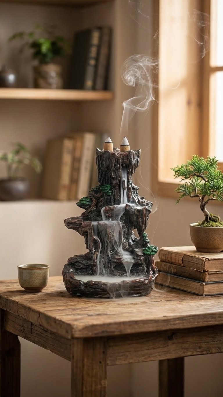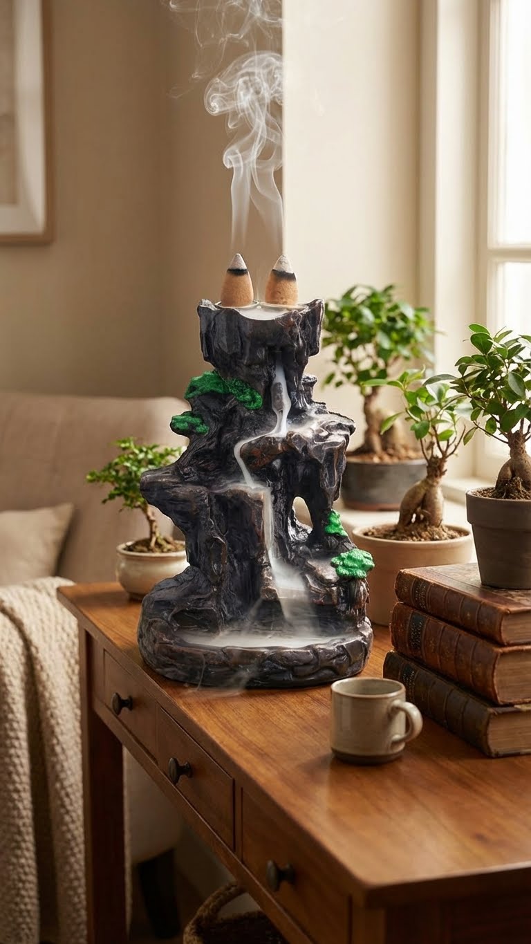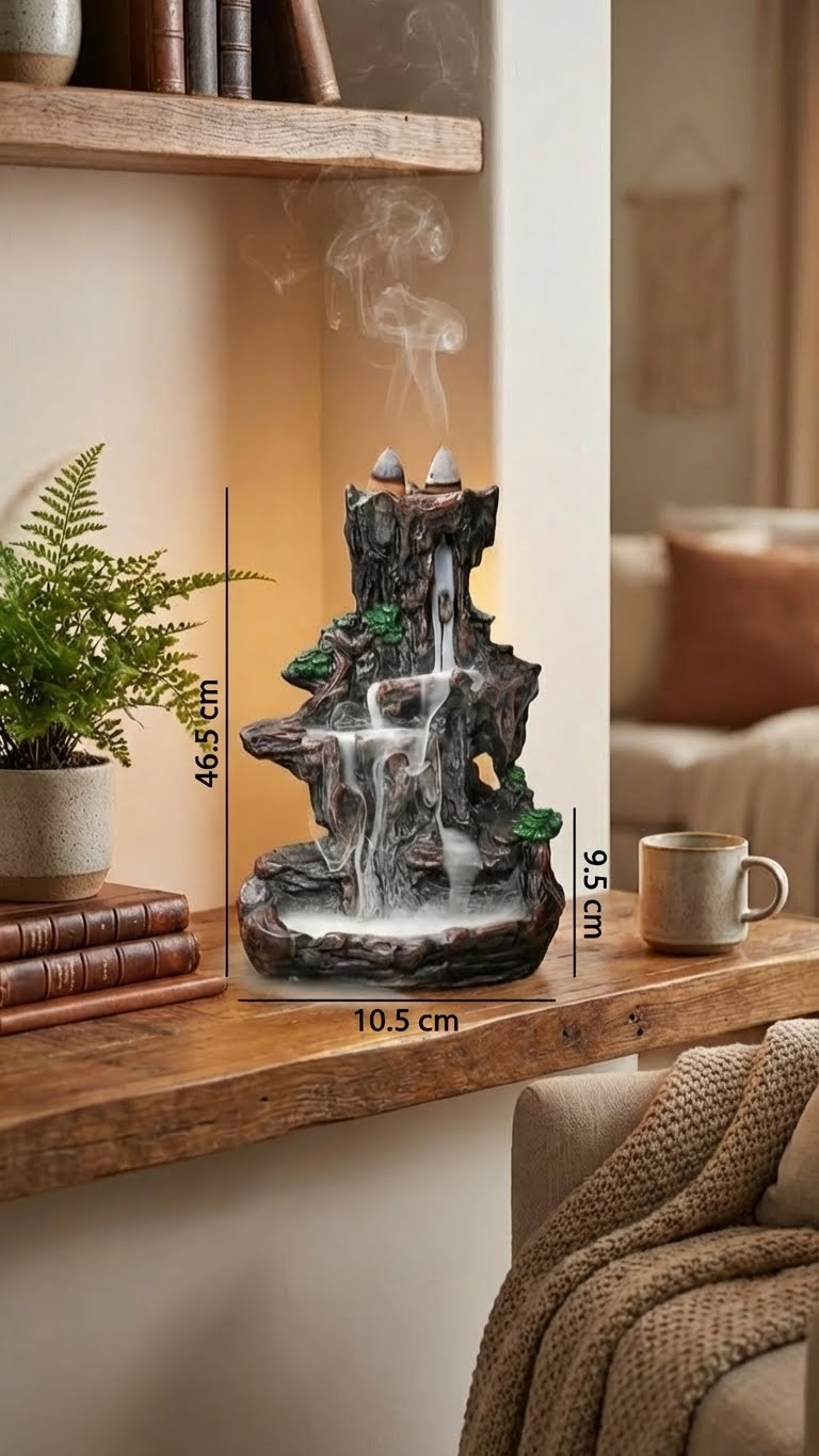 L'art de la cascade de fumée est simple. Placez délicatement un cône d'encens à refoulement sur l'ouverture supérieure et observez la brume éthérée descendre, créant une danse visuelle apaisante et un sanctuaire olfactif unique.