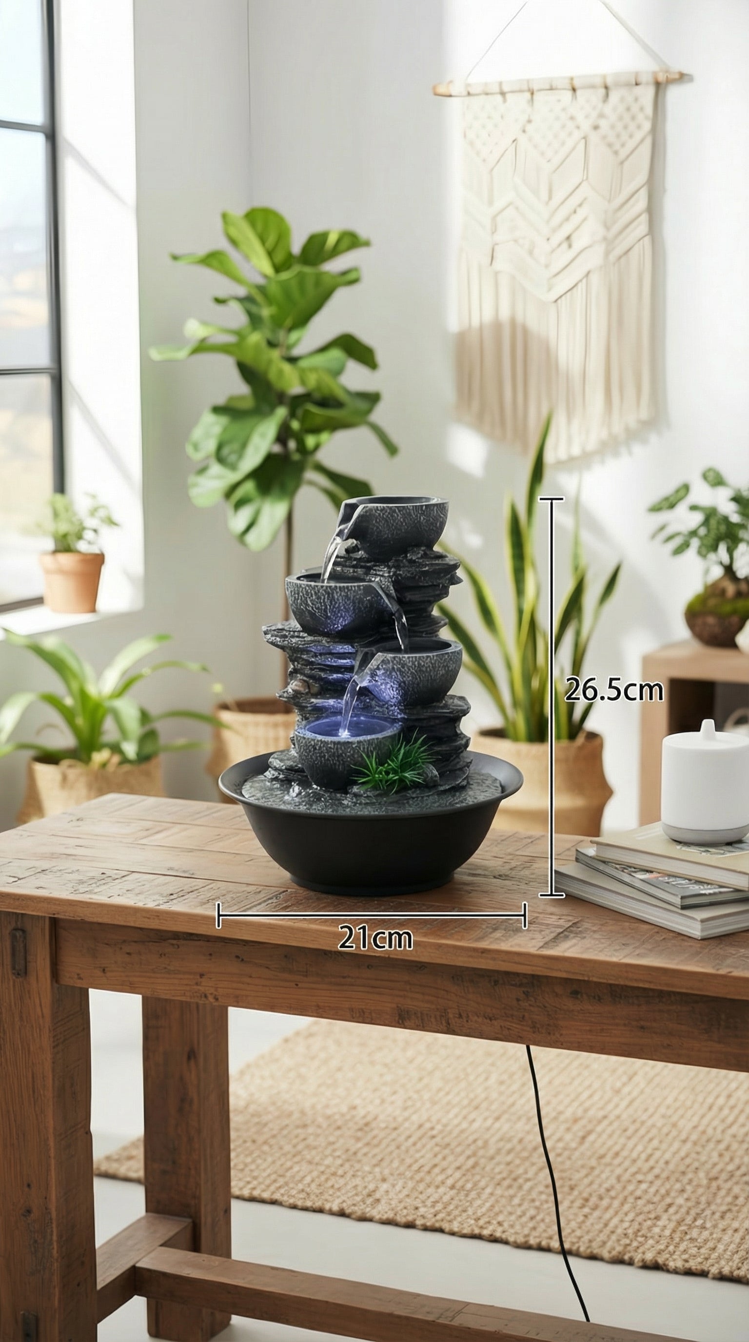 La cascade délicate et le murmure constant de l'eau, associés à une lumière douce, transforment instantanément votre espace en un sanctuaire de sérénité. C'est une invitation à la détente et à la pleine conscience.